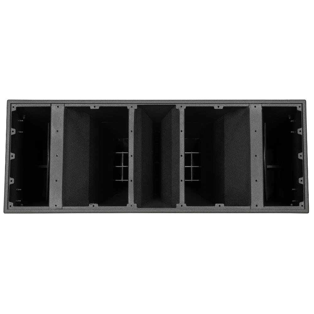 High frequencies 2 x 4” neodymium compression driver, titanium dome, 4 slot phase plug, copper inductance ring for extended response.