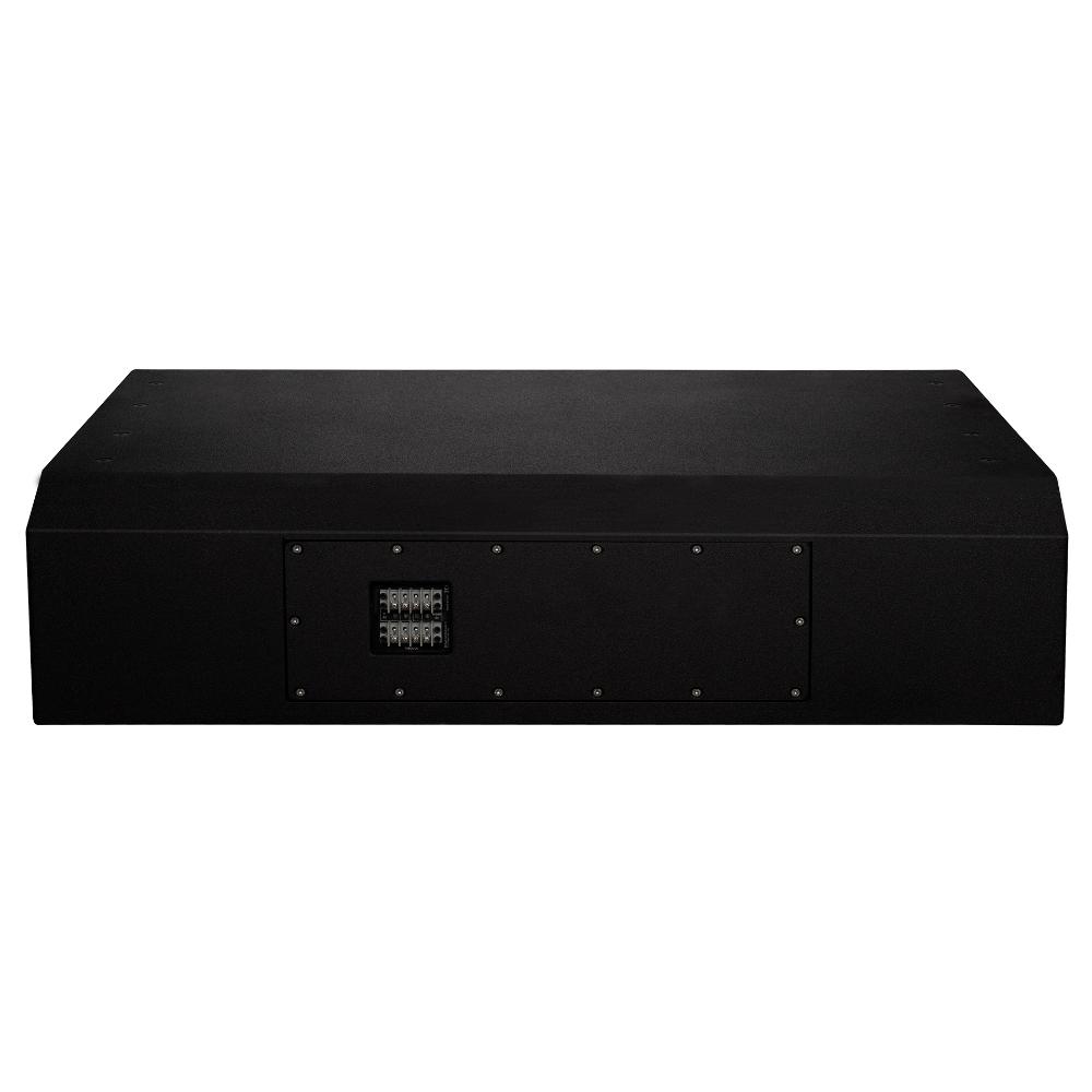 High frequencies 2 x 4” neodymium compression driver, titanium dome, 4 slot phase plug, copper inductance ring for extended response.