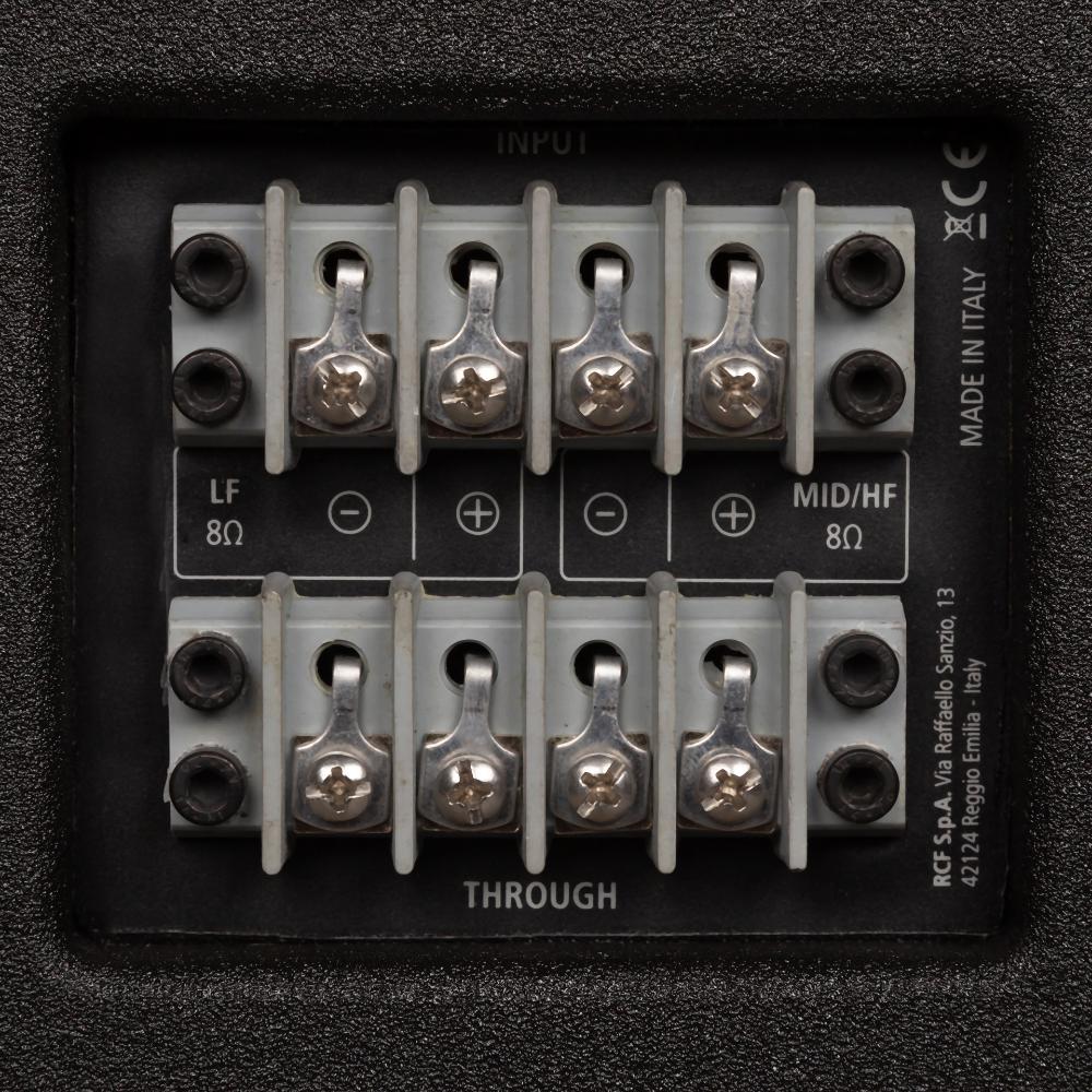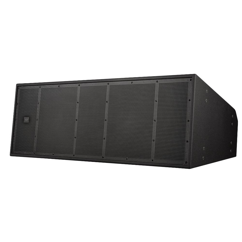 HVL 15-L1 is a three-way, bi-amp loudspeaker system for long-throw applications, outfitted with 2 x 15” woofers, 2 x 10” midranges, and 2 x 4.0” voice coil, titanium dome compression drivers. Equipped with the latest generation of RCF precision transducers with powerful neodymium magnets, HVL 15-L1 provides very high output and accurate sound and voice reproduction. The system, driven in bi-amped mode, can produce a max SPL of 144 dB MHF, handling 1000 W RMS (LF) + 900 W RMS (MHF). An internal passive filter provides crossover and equalization between the midranges and the compression drivers. The horizontal coverage is 90°, and the vertical coverage is 30°. A heavy-duty, weatherproof barrier strip provides connections. The cabinet is made of Baltic birch plywood. The finishing is a waterproof, textured, polyurea coating. The grille is in epoxy coated heavy-duty steel with open-cell fibers and water repellent woven-fabric backing. The back of the cabinet is shaped for under-balcony installation.